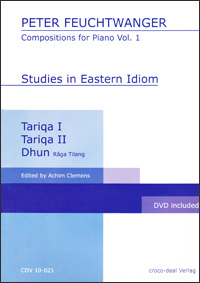Im nun erschienenen 1.Band von Peter Feuchtwangers Klavierkompositionen gelangen drei seiner bekanntesten Werke zur Veröffentlichung. Tariqa I und Tariqa II sind Klangstudien in Anlehnung an Präludien in persischer bzw. arabischer Musik. Dhun ist eine Råga Tilang in nordindischem Idiom.